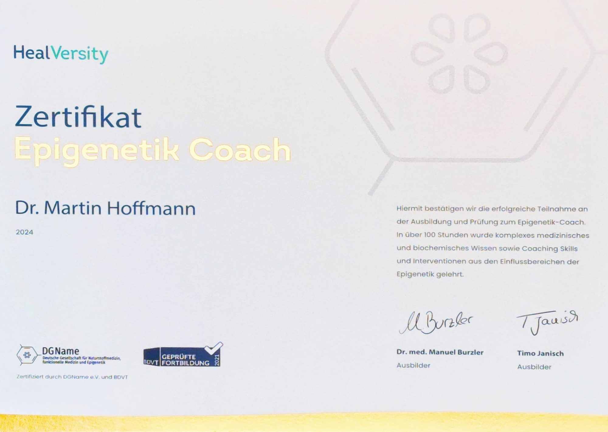 Als promovierter Chemiker mit einer Zertifizierung als Epigenetik Coach vermittle ich Ihnen wissenschaftlich fundiert die Hintergründe und Zusammenhänge in einer Sprache, die zu Ihnen und Ihrem Anliegen passt: so können Sie tiefer eintauchen, wenn Sie neugierig sind, und haben dabei die Sicherheit, zu verstehen und verstanden zu werden.
